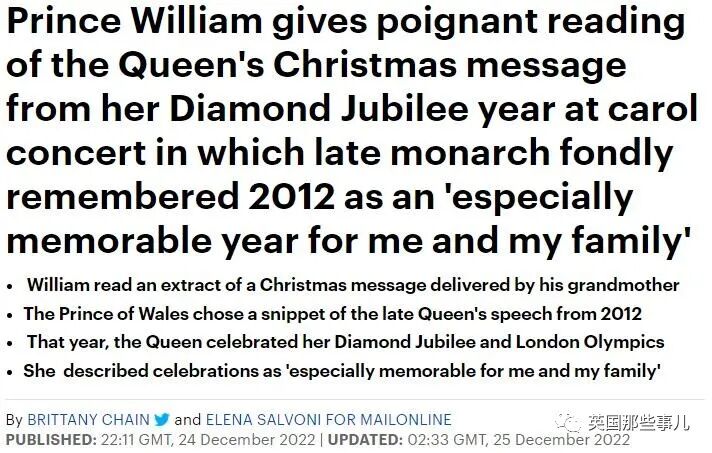 威廉这边就更直接了,他讲的内容干脆就是2012年,女王在颂歌音乐会上演讲的一段摘录......