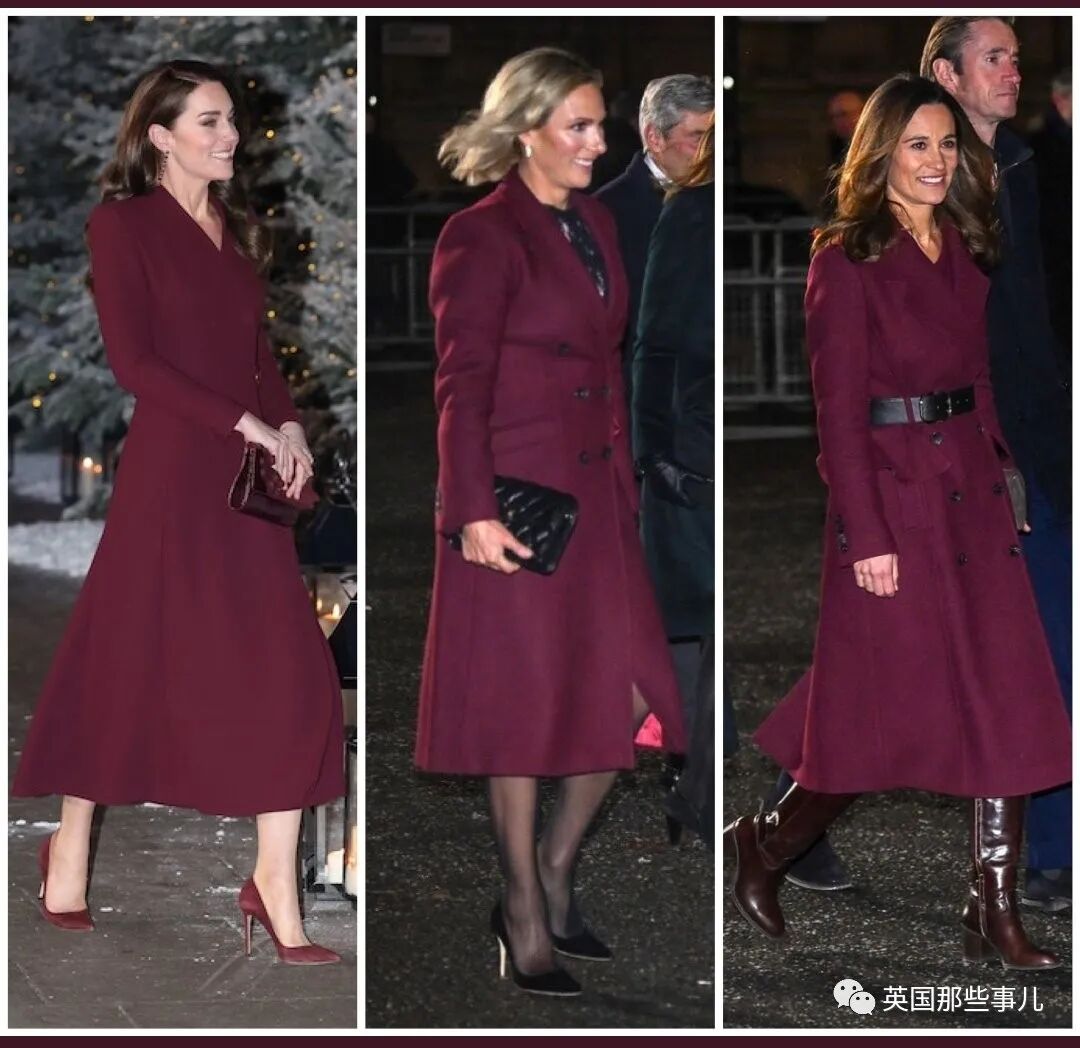 结果王室这边也不知是不是刻意在反击,这次圣诞颂歌音乐会,凯特、夏洛特还有其他一些成员,不仅撞色了,还都是酒红色。