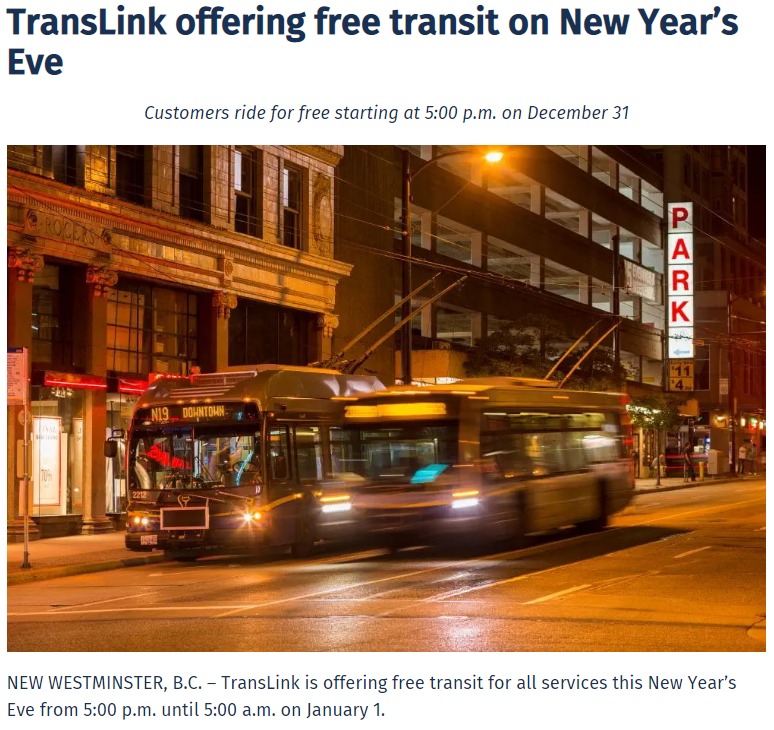 12月31日下午5點至1月1日凌晨5點之間提供免費乘車服務。