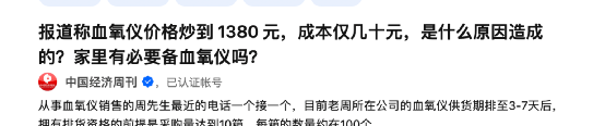 最直观的表现,就是血氧仪再次被抢购一空。