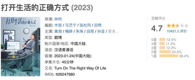 豆瓣評分只有4.7,壹半以上的人給了1、2星。