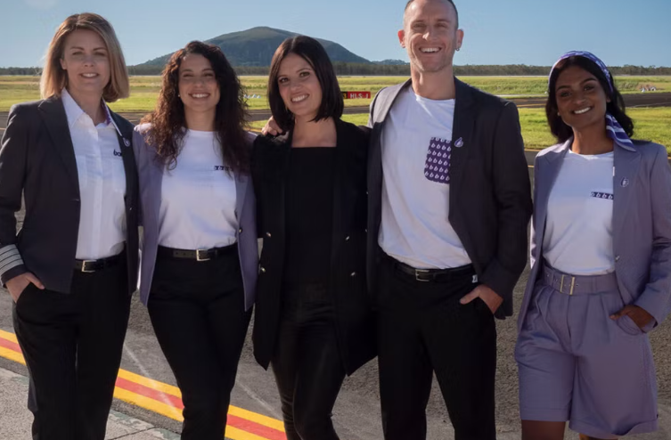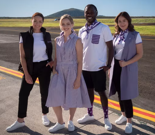 其实,这是澳大利亚bonza航空公司的机组成员。大家之所以相聚在这里,是为了亮相宣传bonza全新工作制服。空姐空少一改往日的帅气西装,女士包裙,以中性休闲风强势袭人,个性十足。仿佛这只是饭局后的爬梯,一股强烈的生活气息。