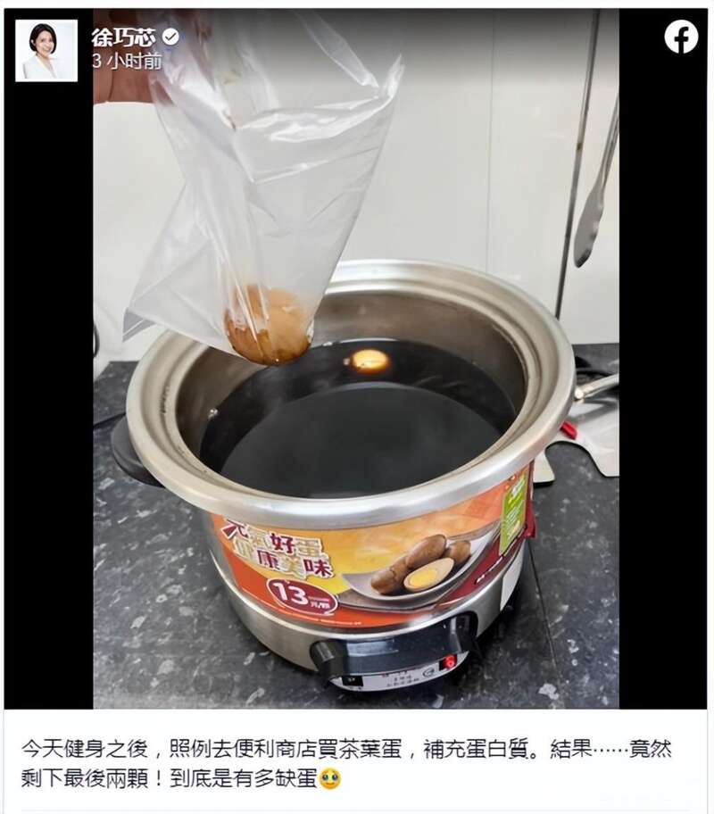 她在社交媒体发文称,2月20日健身后,照例去便利店买茶叶蛋,昔日满满一电饭锅的茶叶蛋,只剩下两个。