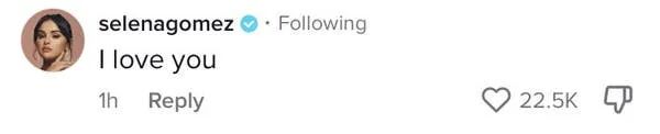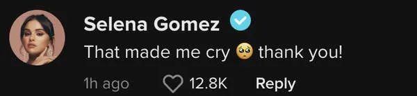 此外,一个名为@essymakingsounds的TikTok粉丝,把北美意难忘的旧事,重提一遍,也被赛琳娜翻牌回复。是否有人为赛琳娜感到难过?你能想象一个爱了你七年的人,在公开分手后的两个月,他就和别人结婚了??然后你自己还是一个患有自身免疫性疾病的人,还要背负着这一切活在公众眼皮底下,当生活已经足够艰难时,还要处理心理健康问题。感谢她如此勇敢,公开,坦诚地讲述她的故事。如果换做我,我想我做不到。因此,每当我遇到困难时,我就会想到赛琳娜。如果她能做到,那么每个人都可以。赛琳娜回复说,'这条评论让我哭了。谢谢你!