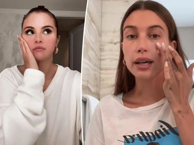 而短短几个小时后,赛琳娜也发布了一段相似的护肤影片。但与海莉自然亲切的语气不同,短片中她一言不发,挤眉弄眼的表情非常耐人寻味。