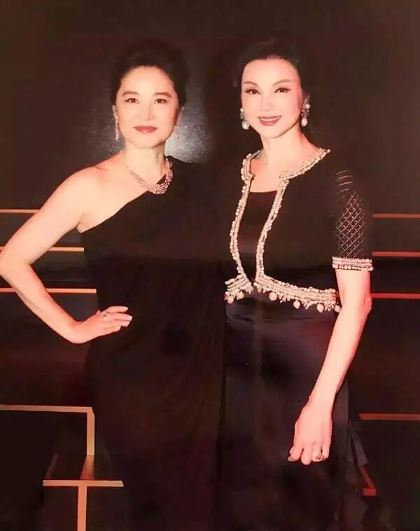 那头带着小女儿林心儿一起出席慈善晚会,和久别重逢的老友胡慧中相谈甚欢。