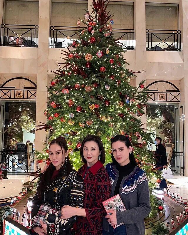 这头参加品酒会,碰见赌王家的四房小女儿何超欣,亲切地跟小辈合影。