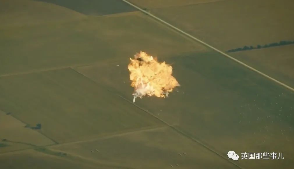 回收着陆前,底部又因不明原因燃烧,最终坠毁到地面炸成了一团火球……