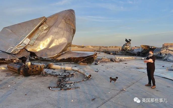 马斯克在SN8残骸旁一脸无奈地拍下了一张合影