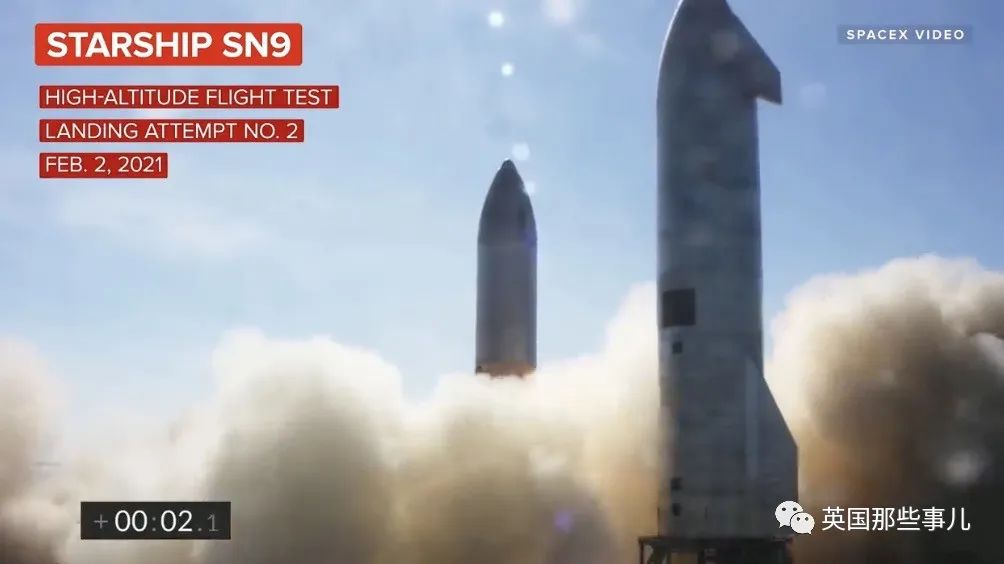 2021年2月2日,星舰原型机SN9进行高空测试和回收着陆测试。由于着落时姿势突然发生偏移,最终坠毁在预定降落地点。