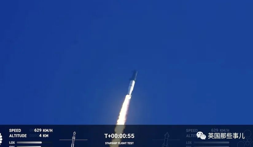 55秒后,它的高度达到了4公里,时速达到了629公里每小时。