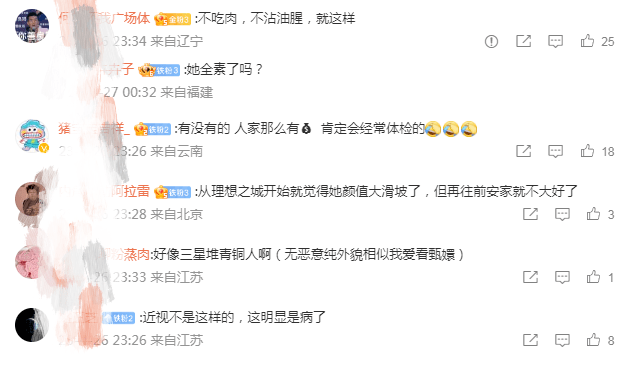 還有網友表示孫儷的顏值從演《安家(電視劇)》時不太好了,《理想之城》裡更是顏值大滑坡,有網友認為可能不是甲亢,以她的身份和地位肯定會定期進行體檢的,導致這種情況可能和她h不吃肉,不沾葷,全吃素有關。