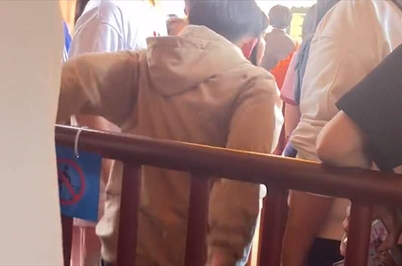 孩子上完厕所回来后,母子俩回到丈夫排队的地方,结果遭到了后面游客的反对,双方就“是不是插队”的问题展开了争执。