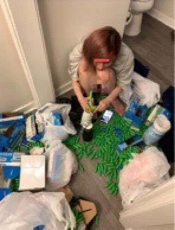 网传该女生吸食笑气的场景令人震惊,地上成百上千个笑气瓶。