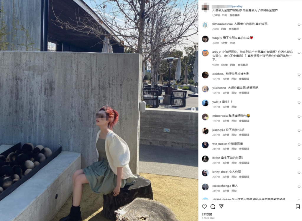 事件发酵至今,已经成为美国华人圈的热点。该女生的Instagram账号也被人肉出来,许多网友涌入其Instagram账号下痛骂。