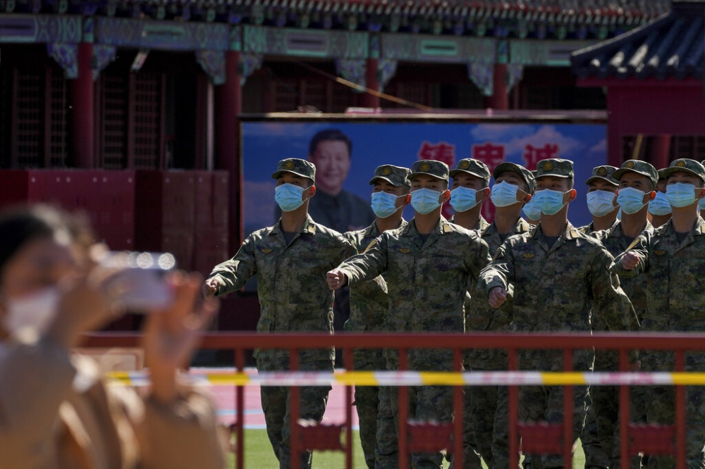 中国网民反武统言论出笼,可以理解为习主席忧心战狼们烧脑过度,替他们打点滴降温。(美联社)