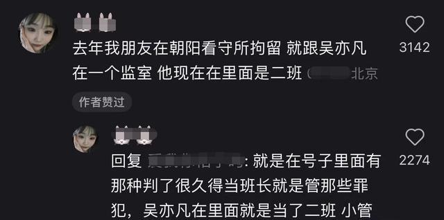 首先,又一位网友称自己的朋友在朝阳看守所拘留,恰巧和吴亦凡在一个监室。她表示目前吴亦凡在狱中还担任了班长的职务,成为一个小管理。
