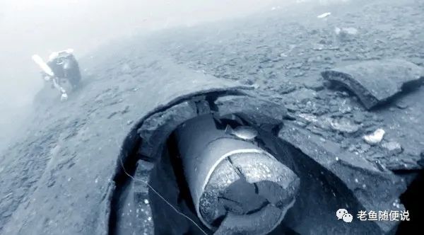 从他们拍摄的照片中可以看到的“抓斗式挖泥船”上安装了两台大型起重机,还配备了金属切割器,这样就可以降到海底剪断并吊起沉船的钢和铝等金属。