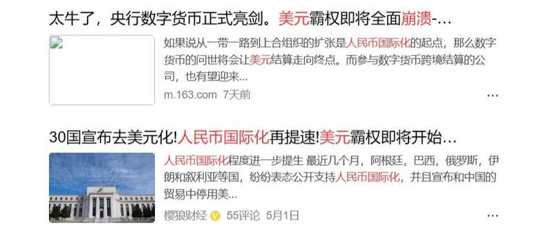 所以,我们用货币互换协议、本币结算协议鼓励各国,联手抗击美元霸权。只要人民币国际化了,美元霸权就崩溃了。问题是: