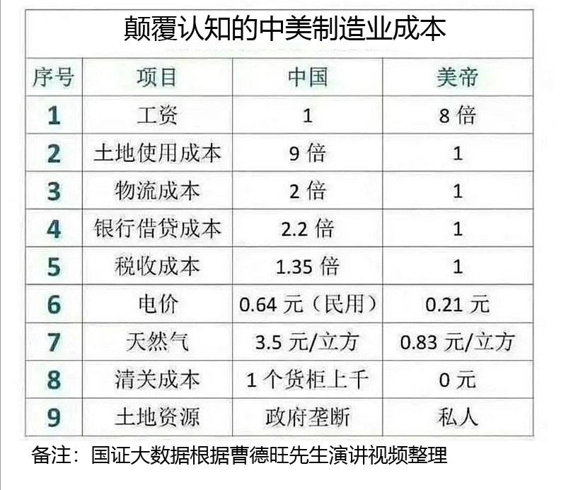制造业的成本,除了劳动力价格,还有土地、物流、资金、能源、运输、税收等众多的成本。美国的人工成本高,但他们的其他成本,特别是制度成本,与我们还是有竞争力的。