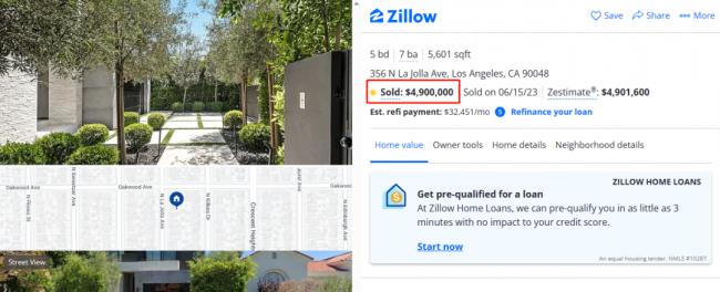 这栋5房7卫的房子,价格是490万美元,6月15日完成交易。
