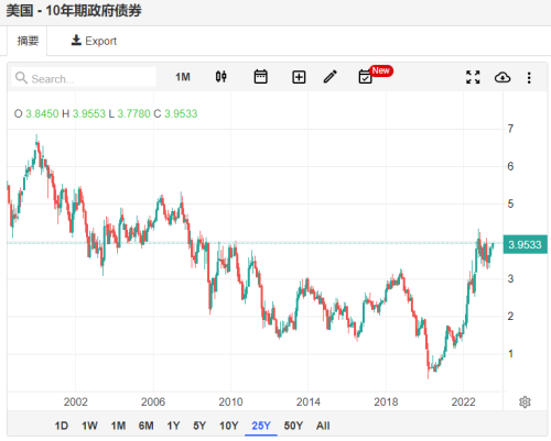大家看下面這個圖,這個圖的意思就是:假設你現在從市場上購買美國政府發行的10年期國債,那麼利息可以達到3.95%。