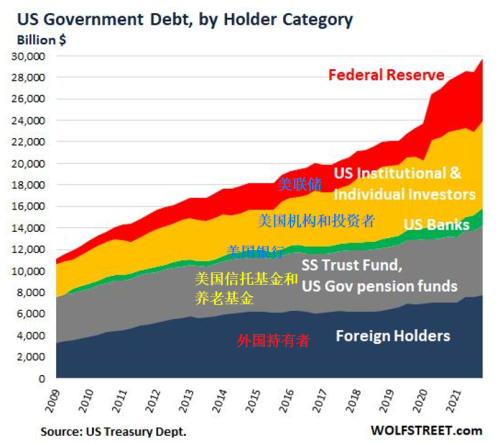 美國政府發行那麼多國債,但是中日持有的總量加起來只有6%不到,剩余的國債都被誰買走了?