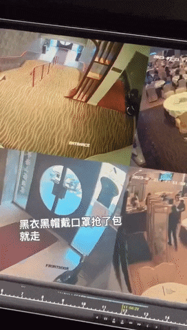 只見,他走到壹張桌子旁邊,然後抓起坐在座位上的顧客的包,沖出了餐廳。