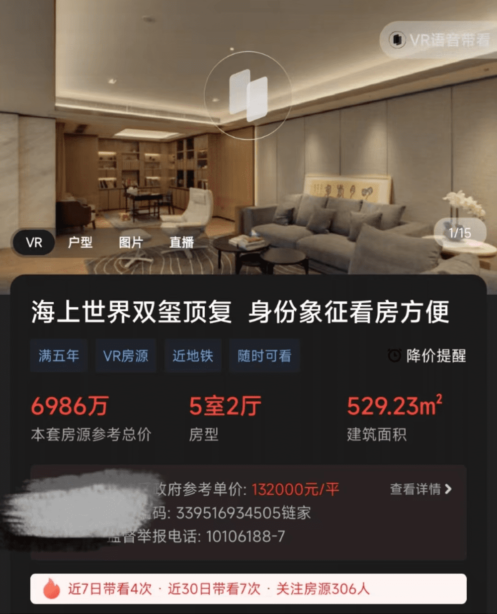 海上世界雙璽頂層掛牌房源(來源:貝殼找房平台)