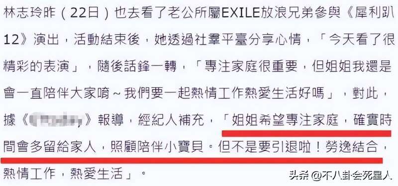 之後林志玲的經紀人出面回應,林志玲沒有隱退啦,只是想暫時花更多時間在家庭上。