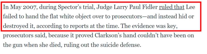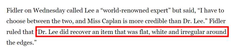 2007 年 5 月,在斯佩克特的審判中,法官拉裡·保羅·菲德勒 (Larry Paul Fidler)裁定李昌鈺確實收走了壹件扁平、白色且邊緣不規則的物品。