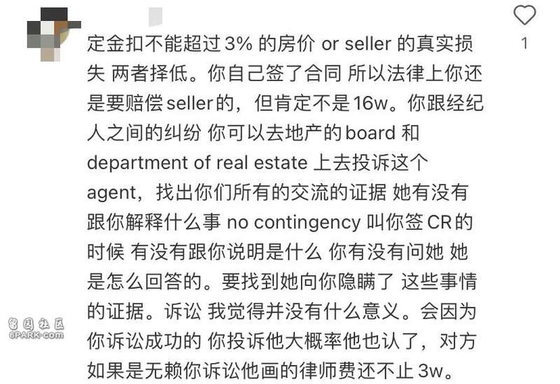 至于赔偿16万刀的问题,小编理解应该是卖家本身98万,因为买家耽误最终变成了88万成交,少赚了钱的差价,但是这笔钱到底是如何定义的,一是要具体看合同细节,二是各州法律也不同。这点网友没有出具太多信息,我们也不得而知。
