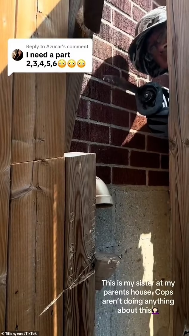 在另一段更新的视频中,蒂芙尼在视频中表示,由于警察对此没有采取任何行动,家里的妹妹阻止邻居用同一把电锯砍伐。