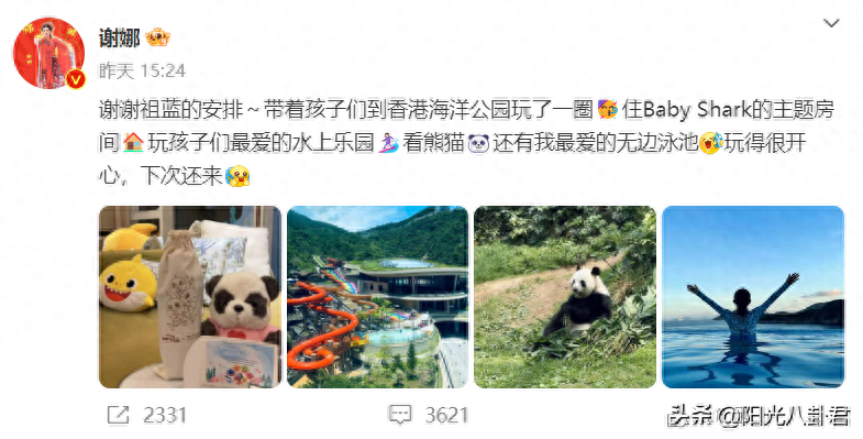 昨天,謝娜壹家人還受王祖藍邀請,專程到香港海洋公園轉了壹圈。