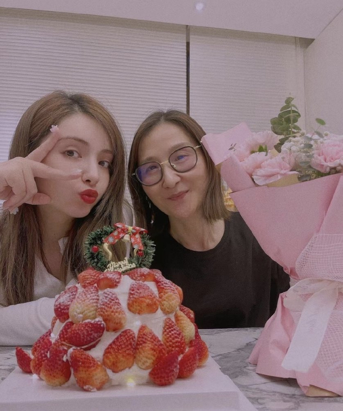 麦迪娜状态超赞,完全看不出已经是两个孩子的母亲,和女儿同框就像姐姐和妹妹。
