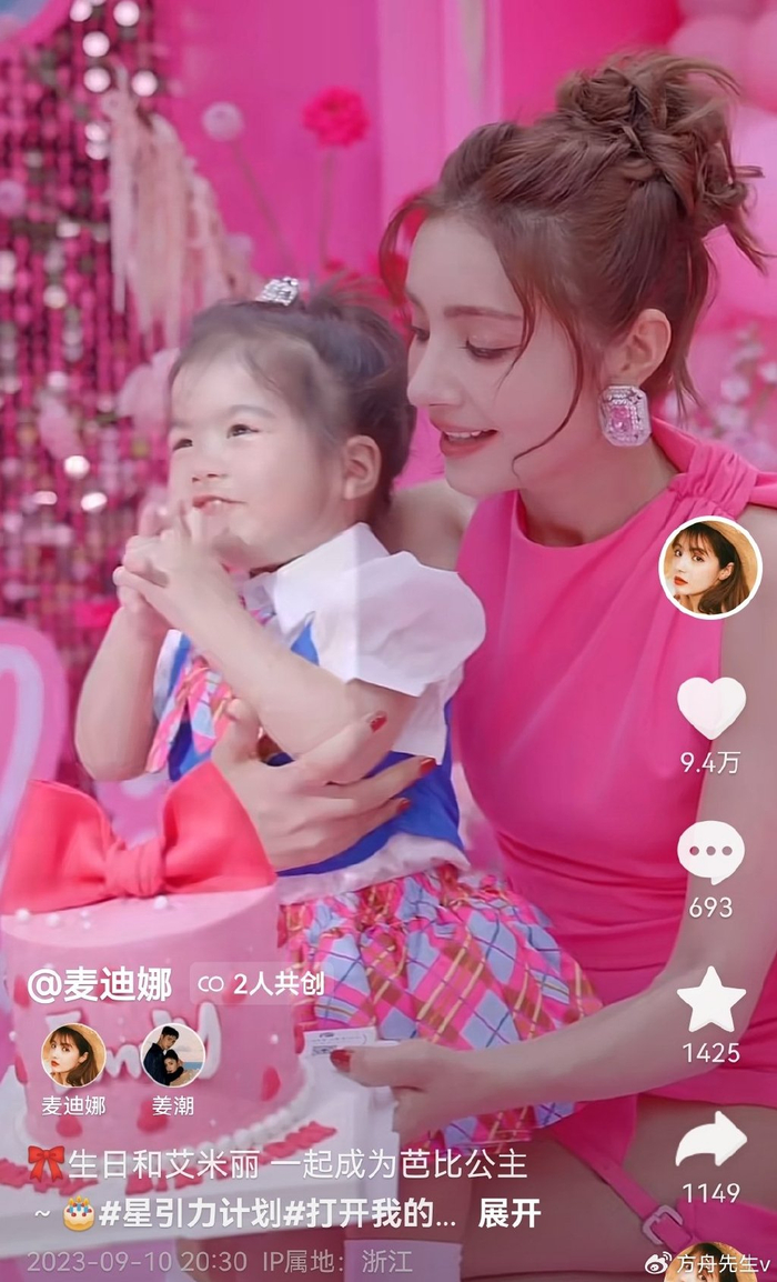 9月11日,36岁麦迪娜在社交平台上分享和2岁女儿一起庆生的画面,她透露这是姜潮为她们准备的惊喜派对,她觉得每个女孩都是自己的公主,都应该拥有不被定义的人生,所以和大家分享自己的幸福。