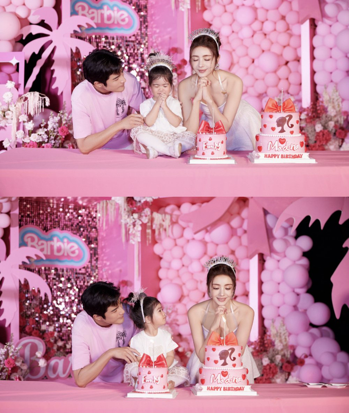 最近电影《芭比》热映,很多人都举办了芭比主题的生日派对,麦迪娜是妥妥的真人芭比,姜潮对现场的布置真的很用心。
