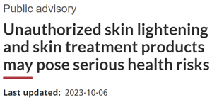 加拿大卫生部建议不要使用未经授权的保健产品来美白皮肤,这些产品可能造成严重健康风险的皮肤病(如湿疹或牛皮癣) 。