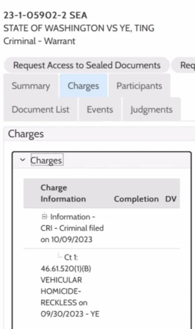10月9日,King县法庭对其发出刑事逮捕令。罪名为:鲁莽驾驶致人死亡。