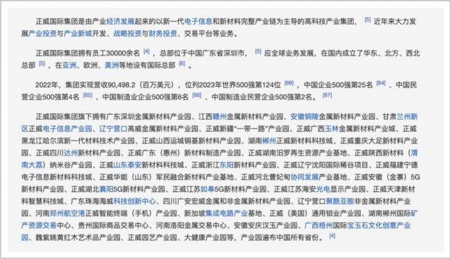 取而代之的是,這次限高風波後,正威官方網站乃至百度百科“正威集團”詞條下,都已刪除上述產業園以及礦產資源儲備的信息,但在正威的壹些招聘廣告中,相關信息依然還可查詢到。