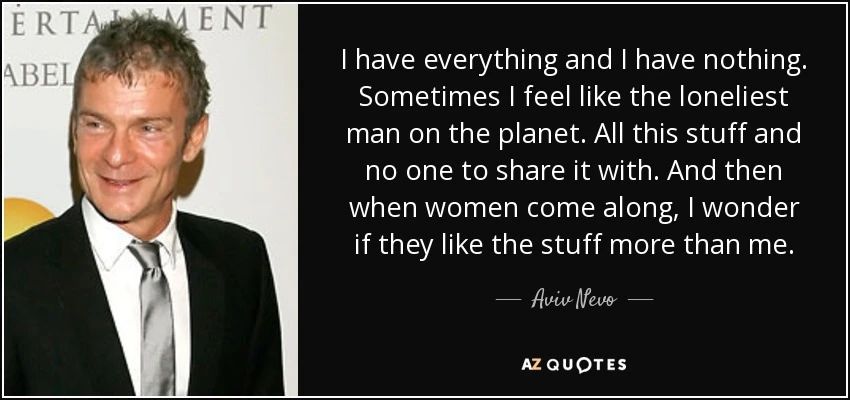 “我明明拥有一切,又一无所有。有时我觉得自己是这个星球上最孤独的人。所有这些东西都没有人可以分享。然后当女性出现时,我想知道她们是否比我更喜欢这些东西。”