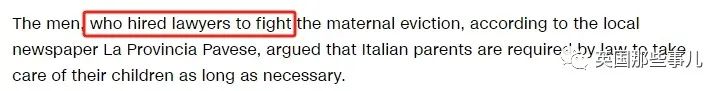更离谱的是,这两人为了继续赖着老母亲,居然还找了律师。声称“根据法律,只要有必要,意大利父母就有义务照顾孩子”........