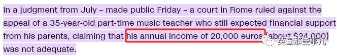 一名35岁的兼职音乐老师,声称自己每年收入两万欧(按当时汇率算,大致相当于人民币16万)不够花,非要父母继续补贴他.......