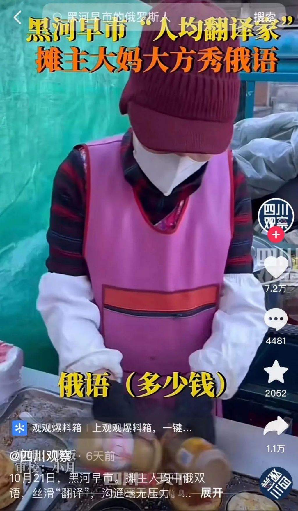 難怪網友說,黑河也許不是國際化大都市,但壹定是國際化大早市,在那裡賣個油條,都成了“國際業務”。