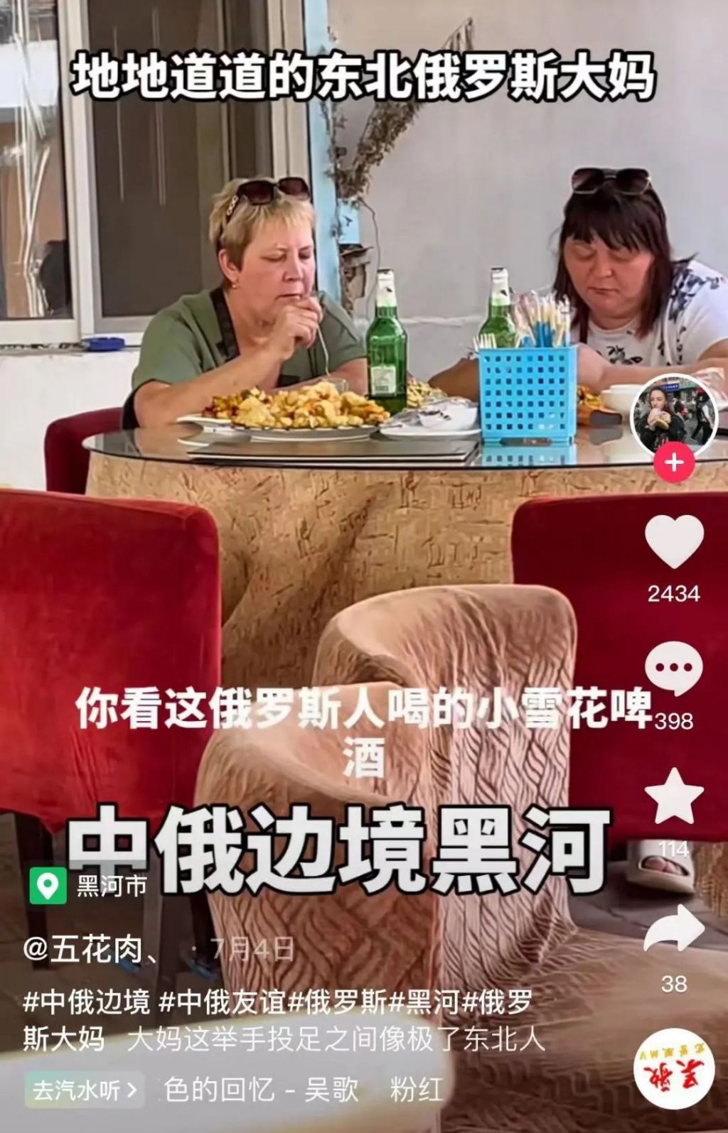 有網友拍到傍晚的壹家東北家常菜館裡俄羅斯人比當地東北人還多。