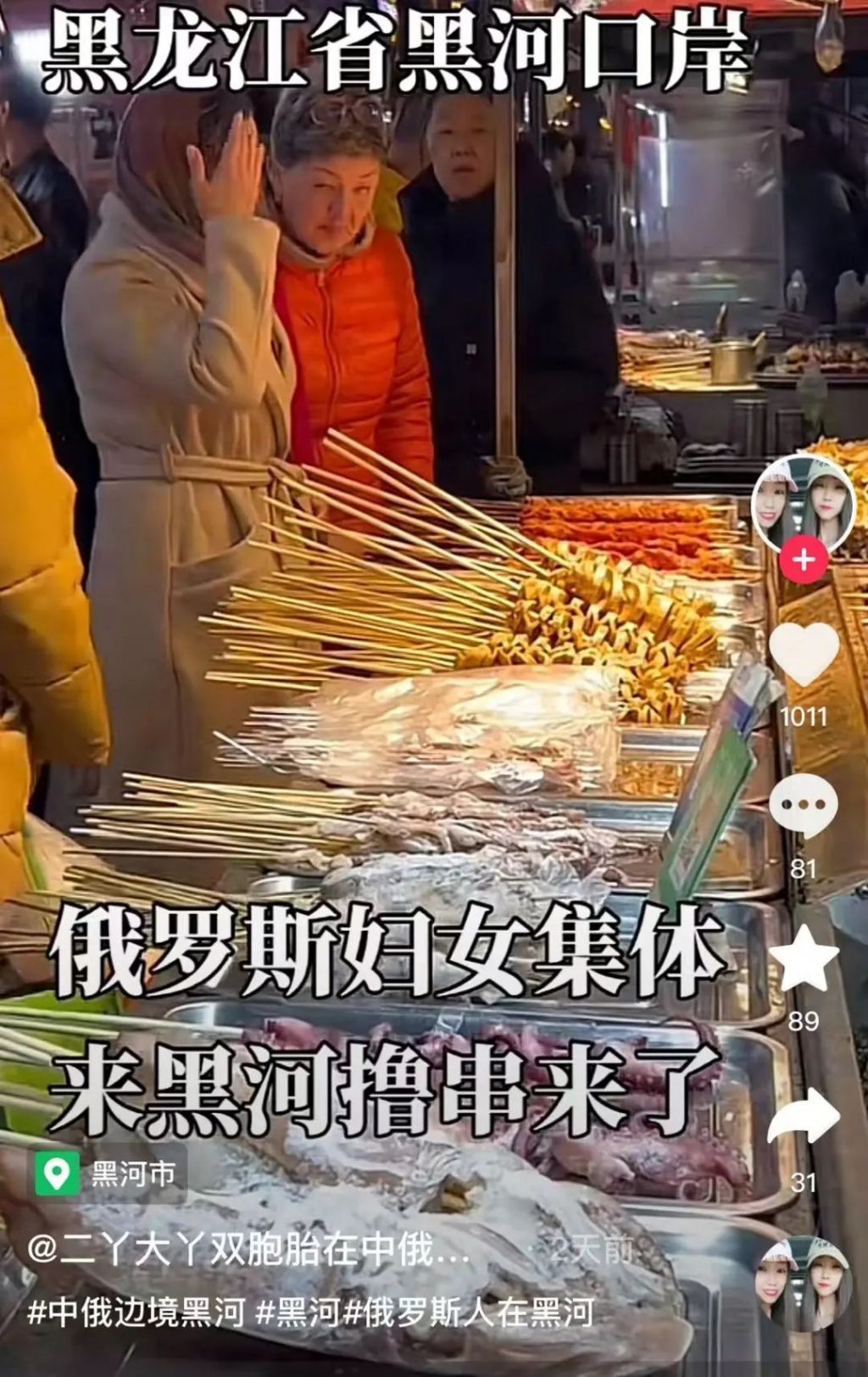 尤其在夏天的夜晚,你會在夜市大排檔的露天燒烤攤上,看到成群結隊的俄羅斯男女老少“跨國擼串兒”。