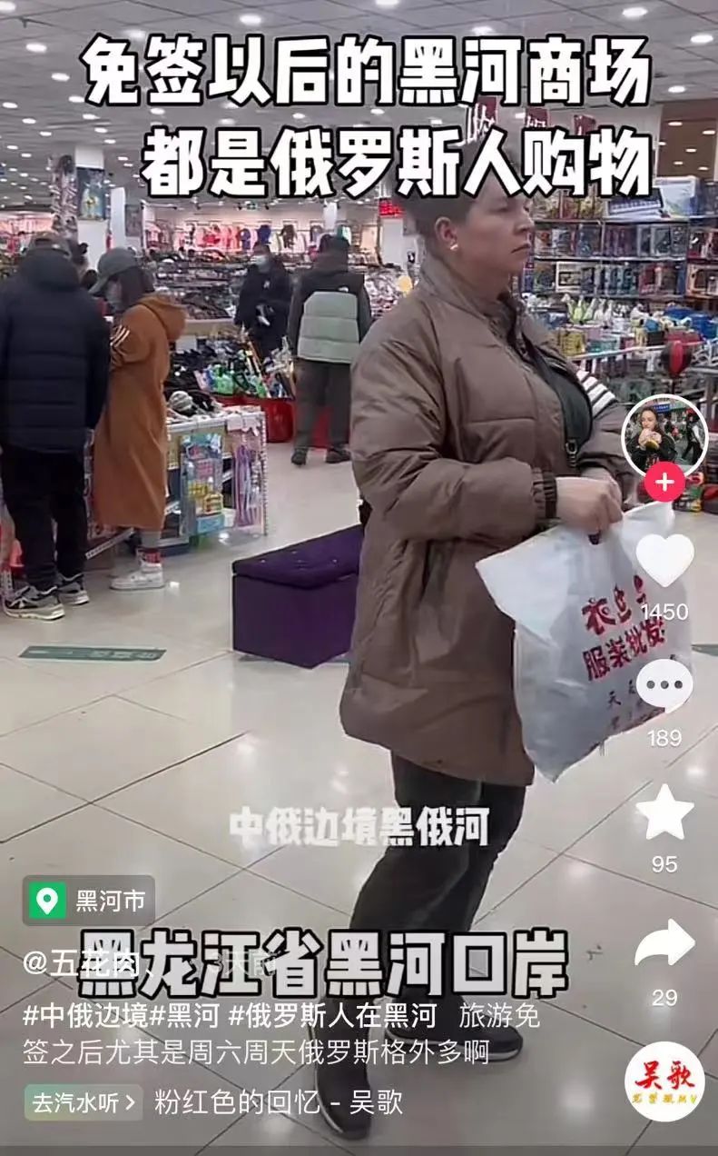 在黑河的服裝批發城,你經常能看到手拿塑料袋的俄羅斯大姐們,壹看就是收獲頗豐的那種。
