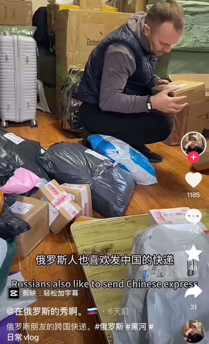 壹位俄羅斯小哥甚至還學會了淘寶網購,專門跑去黑河的菜鳥驛站取網購的快遞,再壹起提回家,這也太機智了吧。