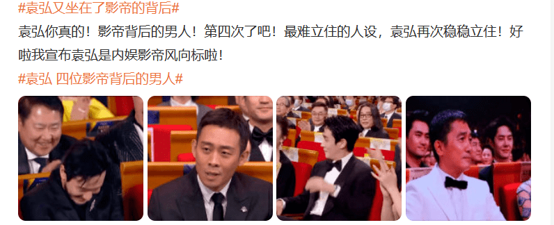 而且袁弘的位置也安排的很刻意,每壹年的影帝都坐在袁弘正前方,他的咖位又沒有那麼高,怎麼能壹直坐在第贰排,感覺就是安排好的。