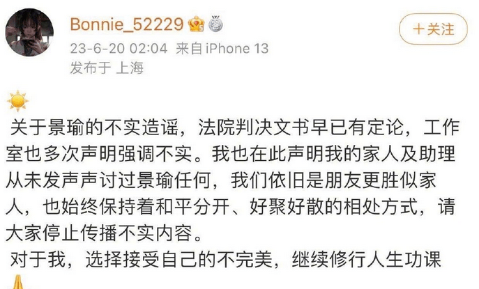 其實在前幾個月,黃景瑜和前妻壹起來了壹波聲明,承認了兩人曾有壹段婚姻,但是辟謠了家暴的壹些傳聞,說是不實消息。